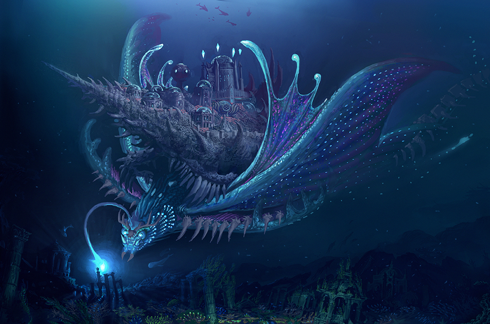 Built upon the back of the mammoth Abyssal Dragons, the Abyssal Palaces were host to some of the earliest documented civilizations in Atlantis. Few documents survived the test of time that even mention the existence of the Abyssal Dragons and the cities they supported. But those that do describe societies so grand and advanced that many modern Atlanteans dismissed them as mere fiction. But with the resurfacing of the Abyssal Dragons, many Atlantean empires have begun to recolonize the water-logged remains of the Abyssal Palace, refurbishing the ancient buildings and using them as inspiration for new development for their empires.